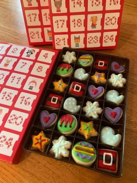 Shop › Christmas Cookie Advent Calendar Image 1 of 1 Christmas Cookie Advent Calendar $50.00 24 hand-painted, individually wrapped cookies. This is a fun and sweet gift to countdown the days till Christmas! Quantity: Add To Cart Added! 24 hand-painted, individually wrapped cookies. This is a fun and sweet gift to countdown the days till Christmas!